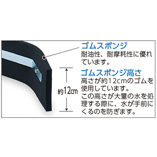 ゴムスポンジ:耐油性、耐摩耗性に優れています。 ゴムスポンジ高さ:高さが約12cmのゴムを使用しています。この高さが大量の水を処理する際に、水が手前にくるのを防ぎます。