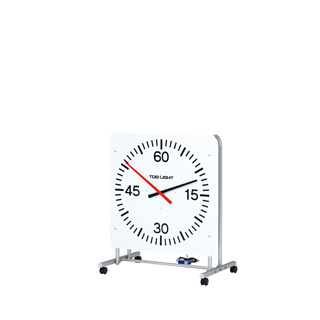 ●幅90×奥行60×高さ110cm、文字盤:発泡塩ビ900×900mm●9.4kg●主材:アルミ(30mm丸、30mm角パイプ)、樹脂キャスター5cm