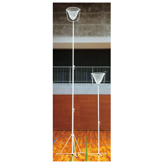 ●1台●カゴ内径43cm、高さ調節(2.2~5m)●16.4kg●本体:スチール28.6、34、42.7mm、ネット:ポリエステル●床保護ゴム付●玉別売●専用ネット付