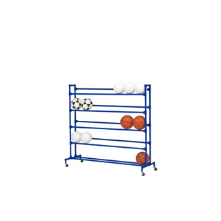 ●幅156×奥行50×高さ148cm●14kg●スチール入り非塩ビ樹脂コートパイプ(直径28mm)●キャスター5cm(2個ストッパー付)●5段式●球技用ボール約25個収納
