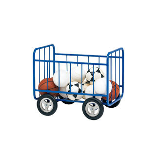 ●幅90×奥行74×高さ75cm、カゴ部幅90×奥行60×高さ60cm●16kg●スチール19mm角●ノーパンクタイヤ25cm●バレーボール(5号球)約25個収納