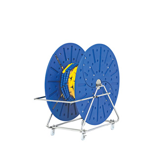●幅84.1×奥行160×高さ157cm、ドラム外径1.4m×内幅58cm●42kg●主材:ポリエチレン、ステンレス27.2mm丸パイプ、回転軸シャフト:ステンレス●ステンレス金具10cm自在キャスター(ナイロン車輪、2個ストッパー付)●コースロープ収納可能数:40~50mm(25m×8本)、60mm(25m×7本)、75mm(25m×4本)、80mm(25m×4本)、110mm(25m×2本)、150mm(25m×1本)
