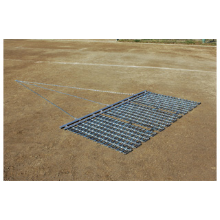 グランド整備に最適な特殊マット。迅速・きれいに整備できます 。 各駒連結は丈夫な4mmスチールワイヤー仕様