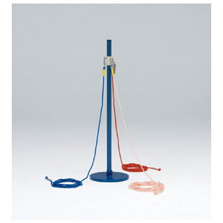 ●セット内容:ロープ3本(青6m・オレンジ8m・オレンジツートン10m)、スライド式フック1ヶ、ポール1本、ベース1ヶ●高さ約1.2m(スライド式フックは無段階調節可能)、ベース直径35cm、厚さ22mm●26kg/組●ロープ:ポリエステル8mm(グリップ部ビニールチューブ付)、ポール:スチール40mmパイプ(肉厚2.6mm)、ベース:スチール無垢材