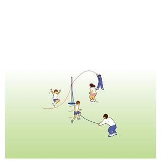 チームに分かれて対抗戦や、大人数でリズム運動も楽しめます。