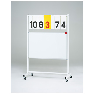 ●幅95.5×奥行55×高さ145cm、ホワイトボード(60×90cm)●13kg●主材:スチール、数字板:エステルターポリン●キャスター5cm(ストッパー付2個)●マグネット取付可能
