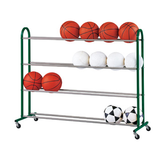 ●幅140×奥行51×高さ114cm●11.3kg●主材:スチール21mm角●キャスター5cm●4段式●球技用ボール約24個収納