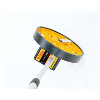 ●車輪径20cm、柄伸縮式(全長51~99cm)●620g●合成樹脂●測定範囲0.1~9999.9m(大型カウンター表示)●目盛10cm間隔