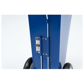 ●幅23.5×奥行23.5×ハンドル高さ77cm(本体43cm)●2.7kg●本体:スチール●タイヤ16.5cm●概算距離(炭カル5cm幅)200m●粉出口高さ約5cm