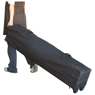高さ5段階調節(頂点部238・246・254・262・270cm、垂幕部170・178・186・194・202cm)、スチール脚28×23mm角、天幕部ポリエステル防水性・250D厚、UVカット率99%、ローラーキャリーバッグ付、中国製