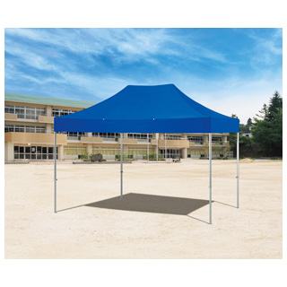 ●3.0×4.5m、収納サイズ32×38×160cm●42kg●フレーム:アルミ(八角形)49・43mm角、天幕:ポリエステル防水性・500D厚・防炎製品(日本防炎協会認定品)、ブルー、UVカット率99%●杭(30cm)×4本、収納カバー、シリコーンスプレー、天幕取付工具付●中国製