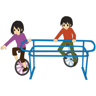 バーにつかまり、サークルに沿って回りながら一輪車の練習ができます。