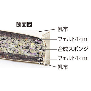 コンビネーションマット(合成スポンジ+フェルト) スポンジの弾力がフェルトに吸収され、教材用の着地マットとしてはもちろん、競技用としての性能を併せ持ちます。