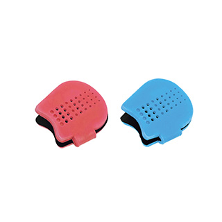 ●2個1組(青・赤各1個)●幅19×長さ20×厚さ9cm、手のひら挿入部最大厚さ4cm●約120g/組●本体:ポリエチレン、グリップ:EVA●台湾製