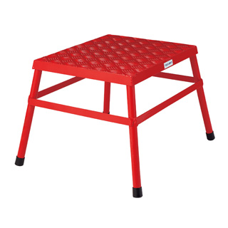 ●紅白1組●幅63×奥行53×高さ40cm(天板:幅50×奥行40cm)●6.5kg/組●脚部:アルミ28mm丸、天板:アルミ縞板(裏面補強:アルミ20mm丸)●下部ゴムキャップ付